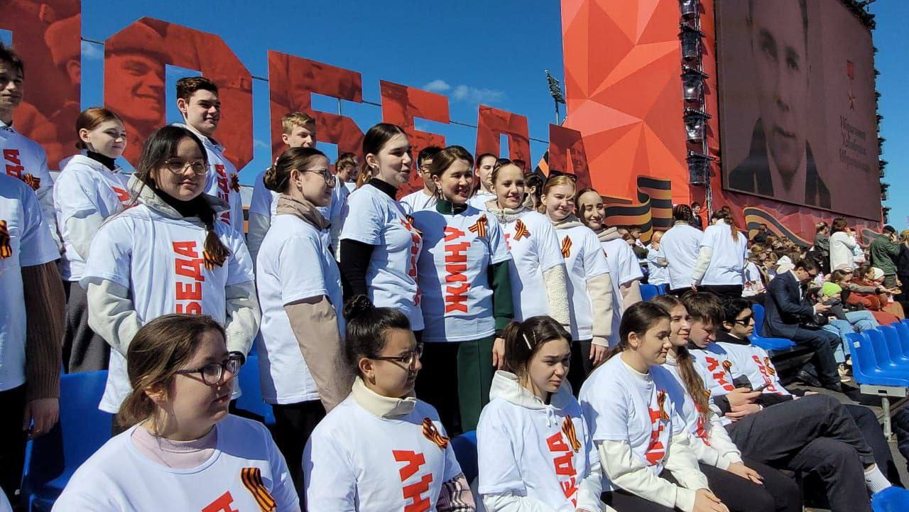 В составе межвузовского хора выступили студенты Казанского государственного института культуры, ВИА «Волга-Волга», а также 10 ведущих вузов Казани. Выступление Тысячного хора под руководством заслуженного работника культуры Республики Татарстан доцента Галиуллиной Эльвири Шафигулловны — это непередаваемые эмоции силы и единства молодого поколения, достойных наследников памяти ветеранов!