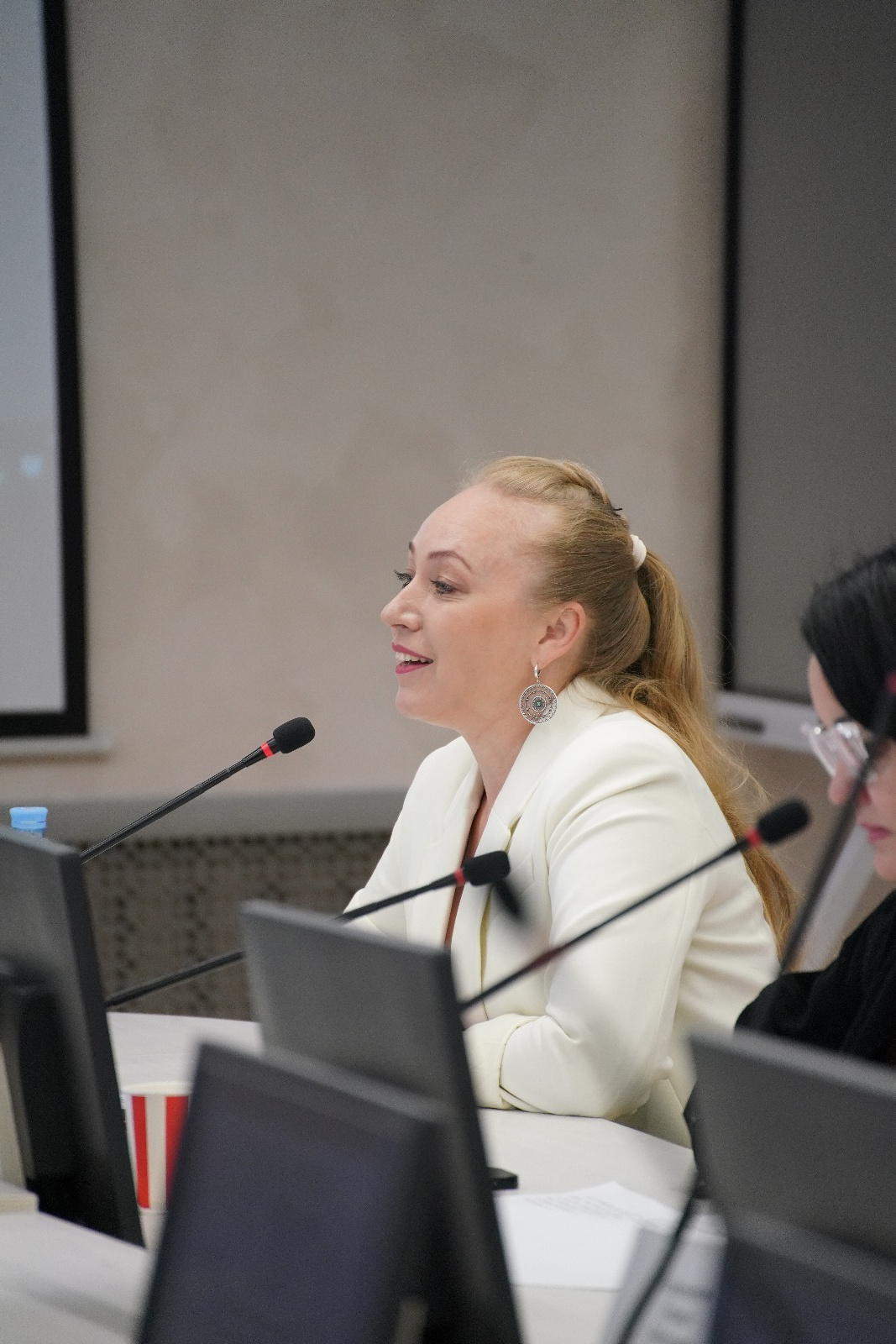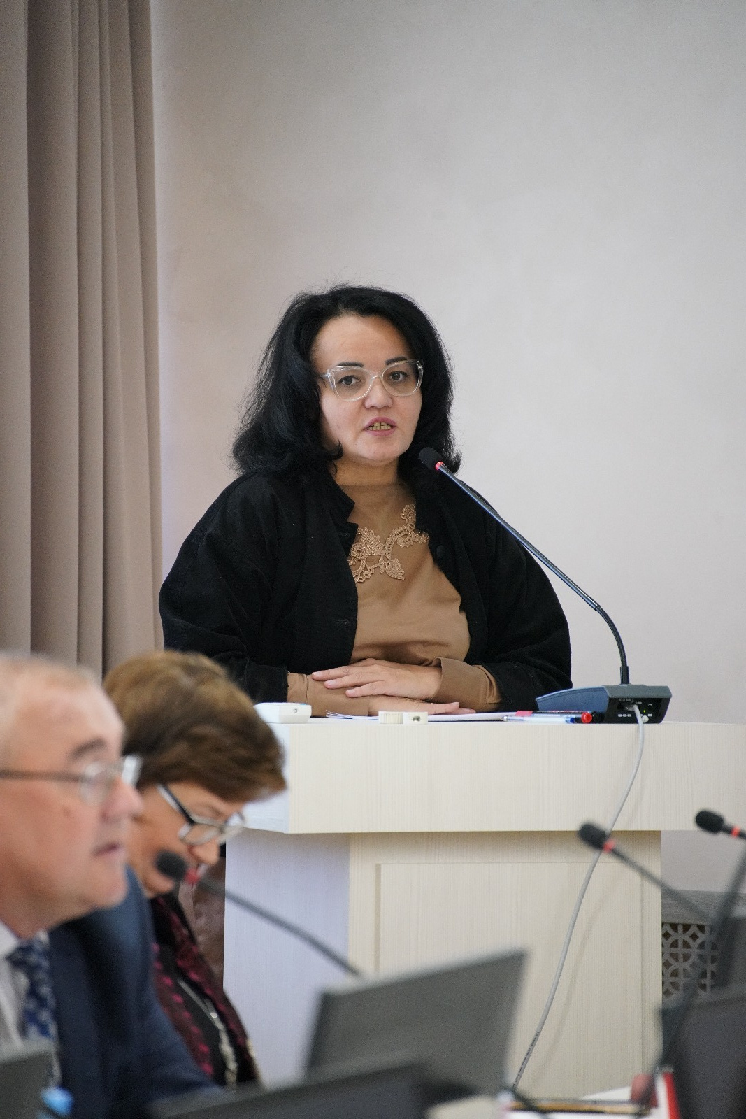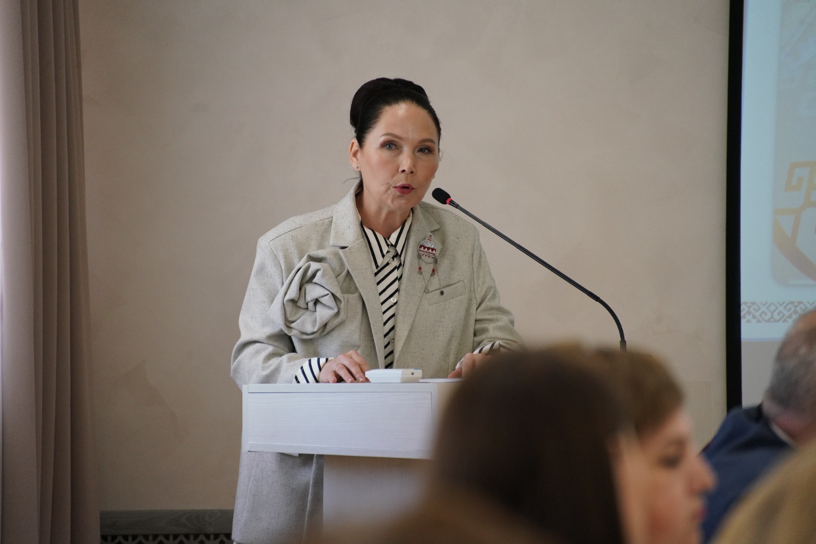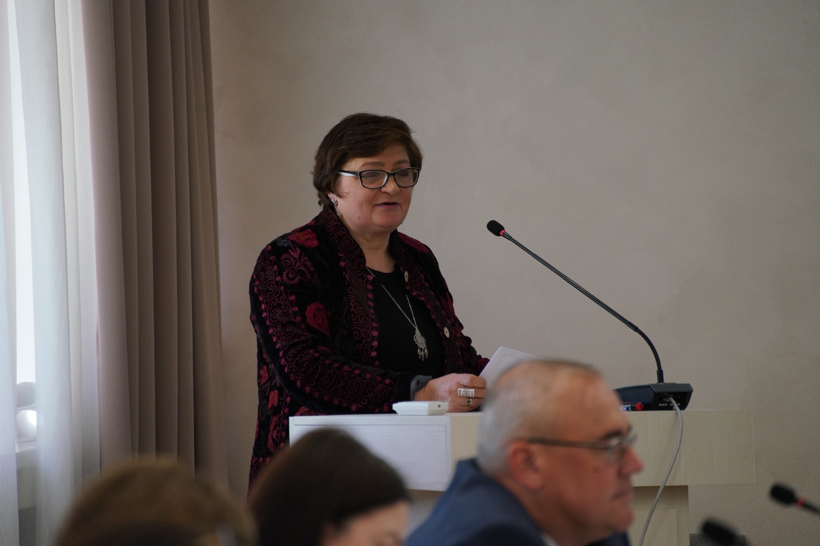 От лица Министра культуры Республики Татарстан поприветствовала участников круглого стола и выступила с докладом директор Ресурсного центра внедрения инноваций и сохранения традиций в сфере культуры Республики Татарстан Мифтахова Алсу Равилевна.
