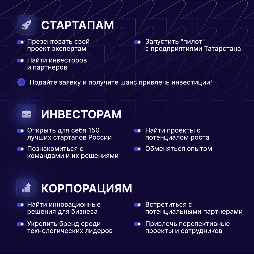 9–11 апреля Казань и Иннополис станут центром технологического бизнеса. Стартапы, инвесторы, корпорации и ученые обсудят ключевые тренды и перспективы.