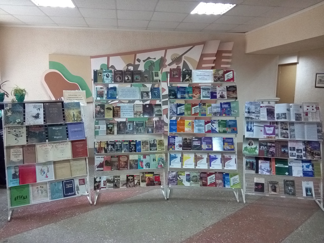 27 мая в Общероссийский день библиотек библиотекой КазГИК были организованы для всех желающих - экскурсия по отделам библиотеки с предоставлением фонда редких книг «Путешествие в мир книги», акция «Подари книгу библиотеке!», в фойе перед читальным залом книжно-журнальная выставка.